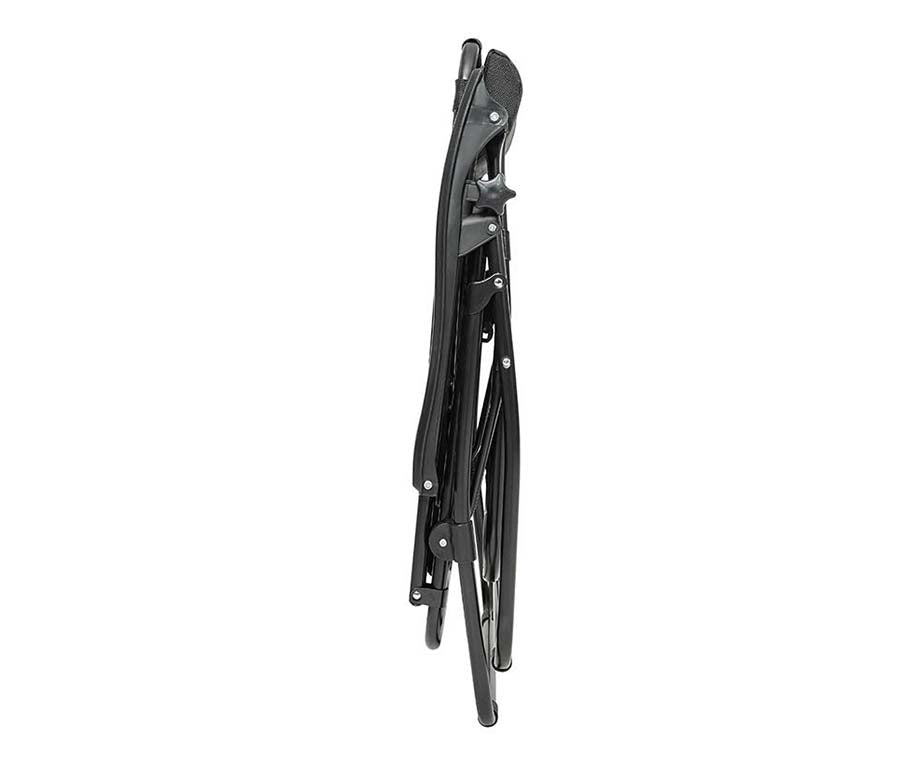De stoel is licht, inklapbaar en daardoor eenvoudig en ruimtebesparend op te bergen. Het kussen is gewatteerd en afneembaar. Daarnaast is het materiaal ademend en biedt het dus verkoeling op een warme zomerdag. Het onderstel is gemaakt van textileen en het frame van staal.